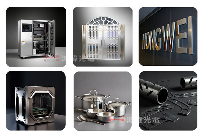為客戶提供最佳的生產設備與解決方案 光纖雷射切割機的應用行業 機殼板金業,廣告招牌業,餐具廚具業,鐵窗門窗業,電器家電業,健身器材業等,汽車零件業等各式金屬產品加工製造業。 非金屬雷射切割機,雕刻機的應用行業 廣告招牌業,壓克力業,木工裝潢業,家具藝品業,文具玩具業,服裝飾品業。